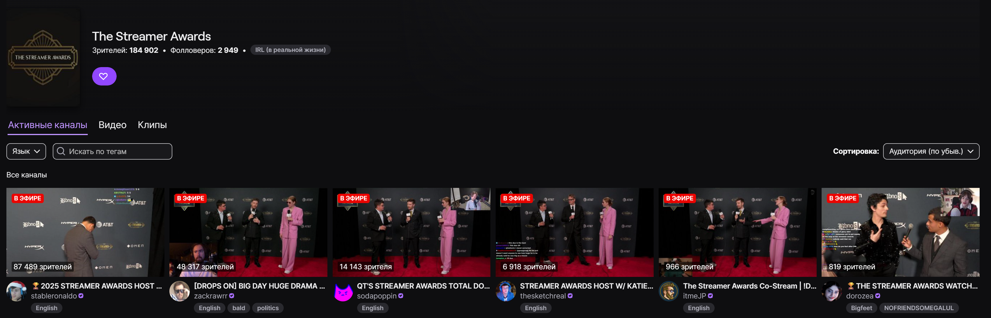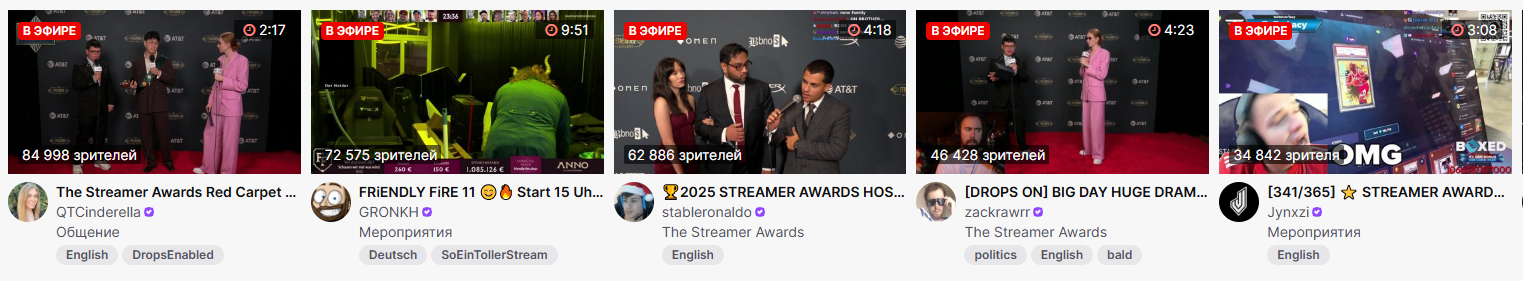 все по отдельности стримят эту церемонию, суммарно их смотрят 300к, это всё ещё меньше чем в 2,5 раза