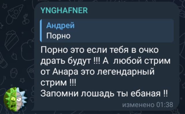 Мэд надеюсь ты чекнешь тред, эту хуйню прощать нельзя. Даже тот же Гитман прямо тебя не оскорблял. Лысая чепуха открыто насмехается над каждым твоим словом.