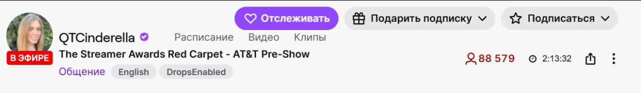 184 тысячи онлайна у американской церемонии - Твич даёт памятный значок