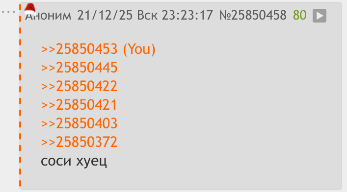 >>25851277 >>25851311 дауны, вас тут только репортят, а вы пытаетесь что-то кому-то доказать, смысл, если это никто не читает и всем похуй, вы тут для всех просто шизодауны