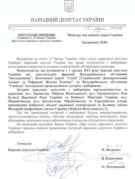 Доставляю инфо. Все, кто находятся в захваченных зданиях, находятся там на легальных основаниях. Нардепы подписали бумажки, которые дают право всем присутствующим на бессрочное пребывание.