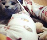 Пусенька покушала, сидит довольная.