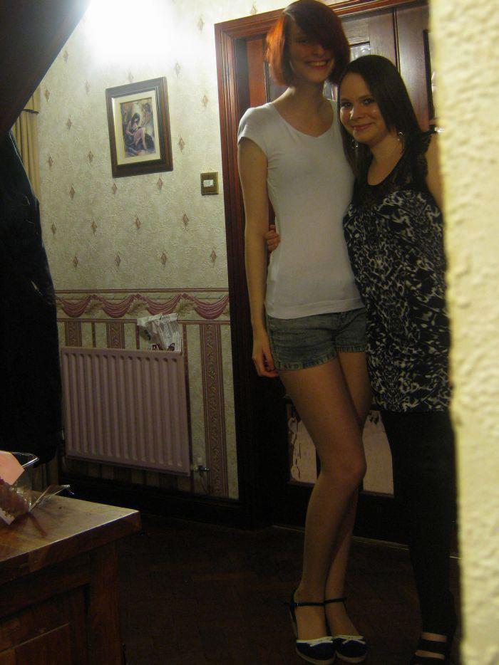 На удивление пропорциональная, обычно у высоких тян слишком длинная шея.
