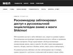 — АНИМЕ и МАНГА ПОПАЛИ ПОД ЗАПРЕТ - Роскомнадзор заблокировал доступ к русскоязычной энциклопедии аниме и манги Shikimori Поданным (https://mel.fm/novosti/2501986-roskomnadzor-zablokiroval-dostup-k-russkoyazychnoy-entsiklopedii-anime-i-mangi-shikimori) реестра, shikimori.one был заблокирован еще 22января, однако трудности сдоступом упользователей возникли только сейчас. Насайте также выкладываюся новости, обзоры, заметки оЯпонии, аниме, манге, кино икиберспорту.