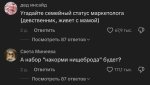 — ПХАХАХАХАХАХ сука... Уебаны орущие про то что главное это ХАРИЗМА, ваше лицо к осмотру. Я просто представил этот маня-мир мамки-тарелочницы, в котором 16ти-летний пацан должен тщательно взвесить финансовые возможности свои и родителей, применительно к тяночке, на которую шишка встает за партой, и только потом решать для себя, любовь это первая или "я НЕ ПОТЯНУ" и прихуел от такой вселенной. Т.е. буквально сама же тупая пизда на свою, возможно ещё нормальную дочку, вешает ценник. А потом удивляемся количеству инцелов и девственников. Хуле на порш не заработал? Пошел нахуй. Хата есть? А чё не двушка в МСК? Пошел нахуй.