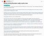 — РУССКИЕ ЗУМЕРЫ ВОСХИТИЛИСЬ ПЫНЕЙ НА РЕДДИТЕ Пост получил сотни лайков от сочувствующих американцев и тонны фидбэка. Пара ватников в комментариях cо своим "А У КАКЛОВ ЕЩЕ ХУЖЕ" или "ЛИБЕСРАХУ ПОРВАЛО" конечно же успели булькнуть в ответ, но на их визги никто не обратил внимание. Вот сам пост: "Быть молодым русским сейчас – это ужасно. Мне 21 год, я из России. Сейчас жизнь в России кажется сущим адом, ОСОБЕННО если ты молод. Я имею в виду всё: люди, работа, зарплата, интернет, ВСЁ. Похоже, мы скоро достигнем дна и станем похожи на Северную Корею. (Мы приближаемся к этому с каждым месяцем, а не годом. Просто посмотрите, какие изменения произойдут к 2025 году). И всё это исходит от правительства. Любого, кто не согласен с их режимом, подвергают травле и сажают в тюрьму, как всех этих людей, вроде Навального, которые в итоге СЛУЧАЙНО погибли (в возрасте 47 лет, лол) их убили». Мы можем получить настоящий приговор за лайки в социальных сетях, которые направлены против правительственной повестки дня. Эти люди, которые нами правят, до ужаса коррумпированы... А если вы захотите покинуть эту страну и эмигрировать, вы столкнетесь с такими препятствиями, как невозможность получить визу, потому что ВСЕ ЦИВИЛИЗОВАННЫЕ страны, такие как США и ЕС, запретили ее для нас, ДЛЯ ОБЫЧНЫХ ЛЮДЕЙ. МЫ ДАЖЕ НЕ МОЖЕМ ПОЛЬЗОВАТЬСЯ БОЛЬШИНСТВОМ ИНТЕРНЕТ-СЕРВИСОВ, ПОТОМУ ЧТО МЫ РУССКИЕ И ВСЕ С НЕЙ СВЯЗАНЫ. Я чувствую себя безнадежно. Нас дискриминируют только по национальности, хотя никто из нас не хотел начинать эту войну или поддерживать их в какой бы то ни было форме. Здесь, работая на обычной работе, вы не сможете накопить деньги на эмиграцию... Даже в Москве вы будете получать максимум 700 долларов в месяц (однокомнатная квартира, как ни странно, стоит столько же). Все способы заработка удаленно [за рубежом] запрещены, и для обхода этих блокировок приходится постоянно использовать VPN. И было бы хорошо, если бы все было так просто. Но существуют «белые списки», а это значит, что работать могут ТОЛЬКО те сайты, которые разрешены правительством. Они ежедневно совершенствуют свои инструменты блокировки. Теперь они разработали системы, способные блокировать даже самые изощренные способы обхода этих блокировок. Из-за этого работа в интернете превращается в сущий ад — половина сайтов не работает сразу после открытия, и приходится постоянно переключаться между режимами «включено» и «выключено» в зависимости от того, где расположены серверы сайта." ------ "Я тоже молодой (25+) россиянин. Я совершенно безнадежен за нашу страну. Ситуация только ухудшается, особенно с 2022 года. Всё блокируется, запрещается, повсюду цензура, и правительство изо всех сил пытается контролировать дыхание каждого человека. Это буквально душит. И сменить страну, найти сообщество, работу и хорошее жилье за границей, а также иметь для этого достаточно денег, — это непросто. И помимо всего прочего, многие россияне чувствуют вину за действия нашего правительства на международной арене. Тема войны очень болезненна, и многие из нас (особенно молодое поколение) никогда не поддерживали подобных действий. Мы любим свою страну, но ненавидим тех, кто ею правит. Мне хочется каждый раз извиняться, когда я говорю о войне, как будто я сам её поддерживаю, но это никогда не было правдой. Нашей страной правят настоящие преступники, и он