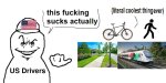 Зачем нужна персональная машина, если в маленьких городах все находится в шаговой доступности, а в б — Зачем нужна персональная машина, если в маленьких городах все находится в шаговой доступности, а в больших городах сильно развит общественный транспорт, в том числе метро? Сам живу в мухосрани и меня напрягает количество машин на дорогах, бесконечная бензиновая вонь, пыль, разъезженные газоны из-за неправильной парковки пидерашек, аварии и так далее. Куда вы все время едете, если город можно пешком обойти за полчаса, инвалиды? Б-г дал мне рабочие ноги и возможность передвигаться пешком или на велосипеде, зачем мне покупать металлический гроб на колёсах? Пыпа давит этих дуриков уже как может утильсборами, налогами, ценами на всё + плюс пробки в больших городах, но они все равно продолжают покупать брички, голодать, влезать в кредиты, но лишь бы не пешком, просто идеальные рабы. В августе месяц жил за городом на природе и прозрел как же это приятно, когда нет шума, пыли, бензиновой вони и какие же неправильные современные города. Жаль, что у нас никогда не будет такого развития микромобильности, как например в Нигерландах, и скорее наоборот, власти будут нас, когда поймут, что каждый лисопедист и пешеход — это не купленный гроб говноваза, а также человек без цепи на шее, за которую его можно контролировать.