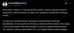 — Илон Маск заявил, что всегда можно понять, какая сторона является хорошей, а какая плохой, по тому, кто стремится ограничить свободу слова. Та сторона, которая вводит цензуру и ограничивает свободу выражения, это всегда были Гитлеры, Сталины и Муссолини этого мира. У них существовала жёсткая цензура и строгие ограничения на речь. Это один из главных признаков того, что перед вами плохие режимы. На самом деле ограничение свободы слова в сочетании с разросшимся государством по своей сути является фашизмом. Поэтому попытки продвигать цензуру лишь ясно показывают, что именно левые силы выступают против свободы. Свобода слова это лишь одна из фундаментальных свобод, которые должны существовать в цивилизованном обществе. Идеи должны побеждать силой аргументов, а не потому, что альтернативные точки зрения подавляются. Ну и в чём он неправ?