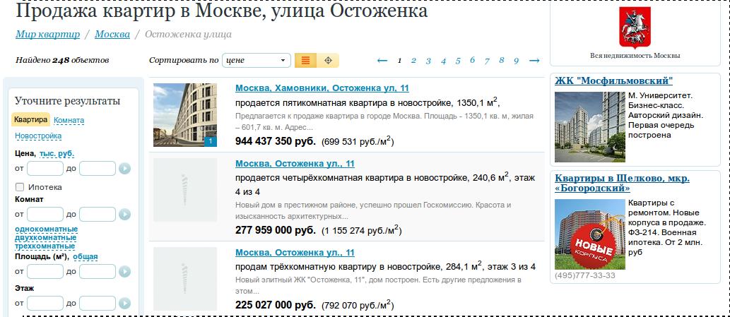 >квартира в обоссаном москвабаде - 944 млн. рублей.