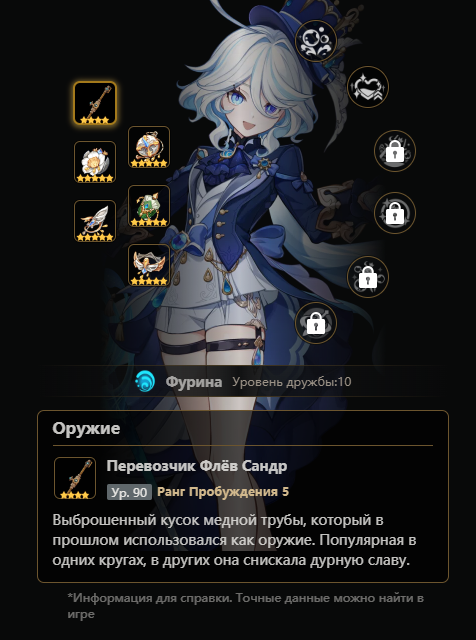 >Кококо Янка 20 >Кудкудах Невилет 20 Все ваши дамаги держатся исключительно на соплях. Поставил к Фурине хоть четверку из 1.5, хоть S тир дд - получил 20~ секунд. Не взял Фурину - дамаг который раньше держался исключительно на сопле распался на плесень и липовый мед.