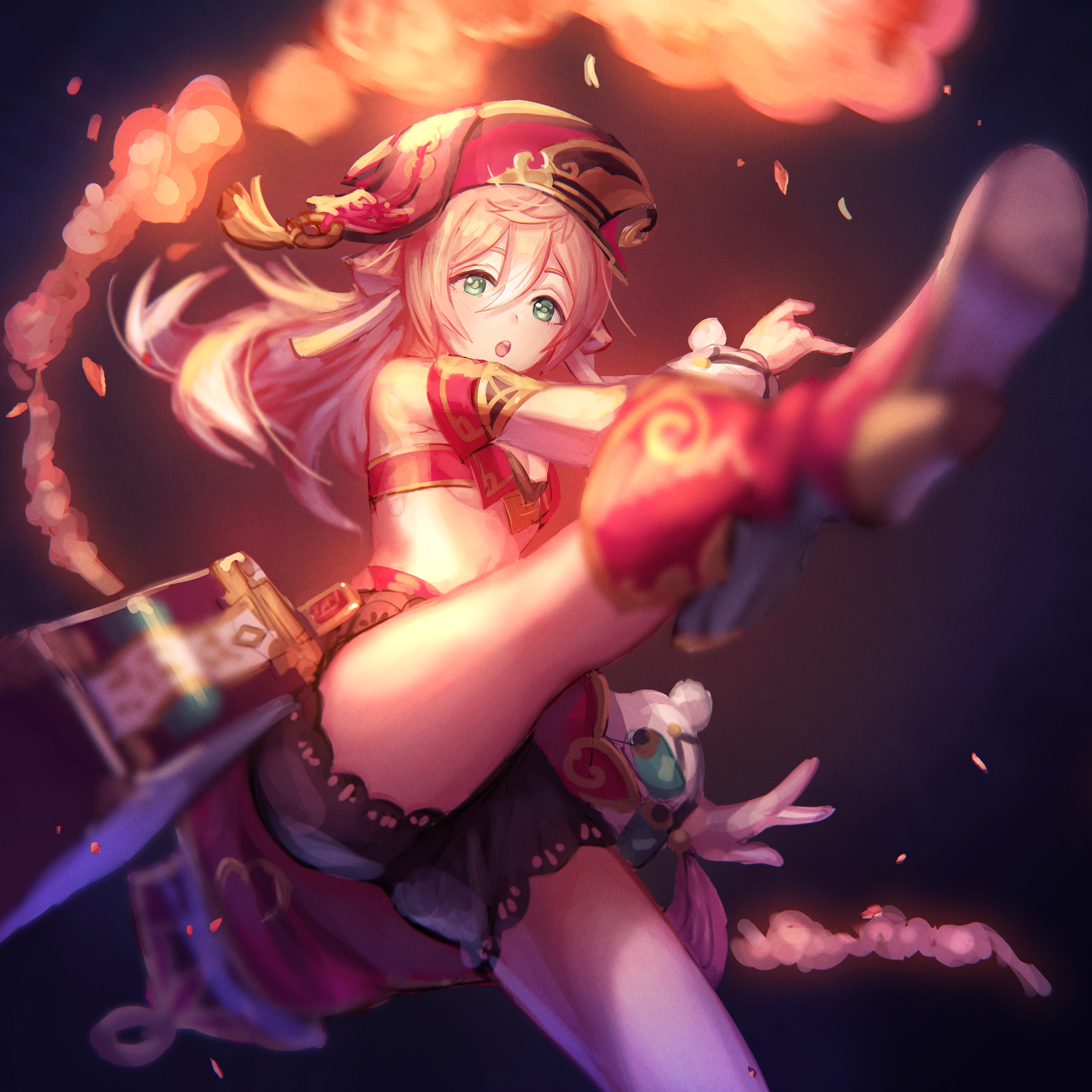 Куча на комбинированной энергии Анемо и Пиро улетает в атмосферу.