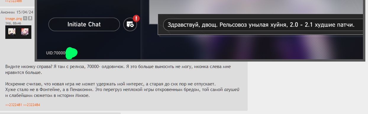 >>2326297 Ой бляяя, этот долбоёб ещё и насрал в анонимность. Раньше можно было создать акк на энке, и подтянуть с него персов в акашу, была отдельная ссылка, без UID, которой можно было делиться, и твои циферки никто не узнает. А теперь он высрал сверху плашку, которая сразу показывает все акки, и юид, и енку, и всё сразу. Как же идиот вредитель дизайнит этот сайт.