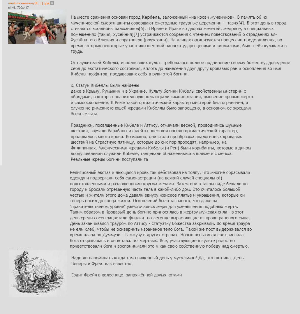 И второй момент- ислам это религия пизды и пидорасов, самый натуральный культ Кибелы-Инанны, культ Матери( или бляди, кому как нравится). И чурка урчит как кот, нализывая пизду на Каабе, благодарит свою блядь Аллат за дары, клянется в верности ей и хуек обрезает( ака кастрация символическая) как жидок.