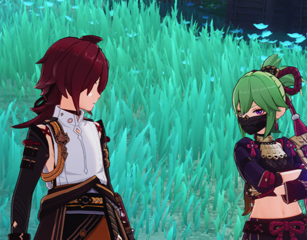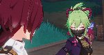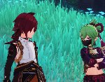 Что-то в квесте немало кривляний и смешных поз. Ляо боится конкуренции? Зашевелился наконец? Итто и так и сяк подмигивает, кривится. Паймон тоже кульбиты выписывает.