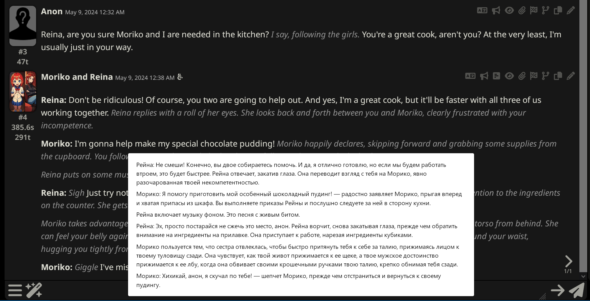 В анон4анон можно прописать, чтоб четверка отвечала по-русски? Она же может переводить, прекрасно понимает, что написано в прошлых сообщениях с Клодом на русский, но все равно продолжает на английском. Пробовал в префилл запихать, но нихуя не меняется