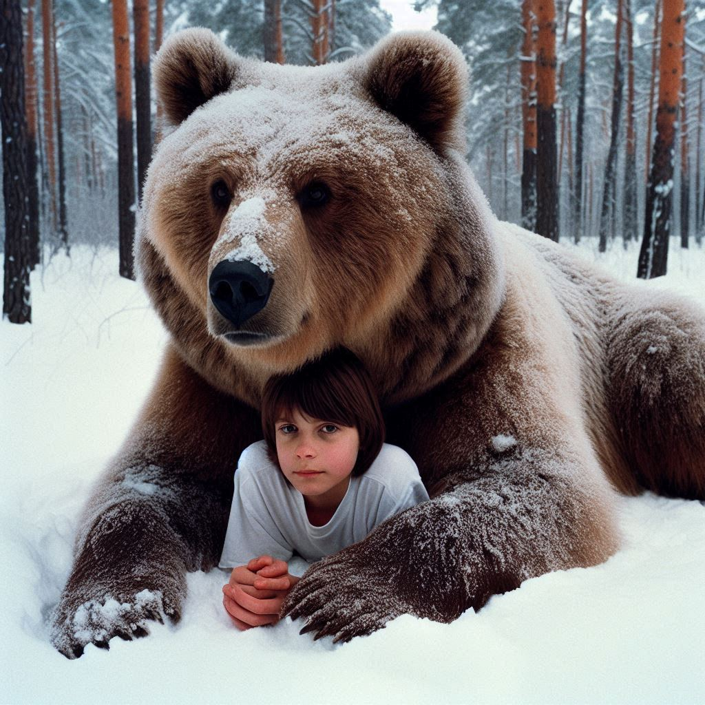 >>305357028 снежная буря, winter, темнеет, Hanna film, flat tank top, skinny, petite, веснушки, грустная, very blond hair and eyebrows, валяется в снегу с волком, прикрывая лицо от летящего снега, динамичная поза, вся в бинтах, синяки, шрамы, pine trees, ветер, sunlight and shadows, acrylic semi-digital painting, life is strange style, limited palette