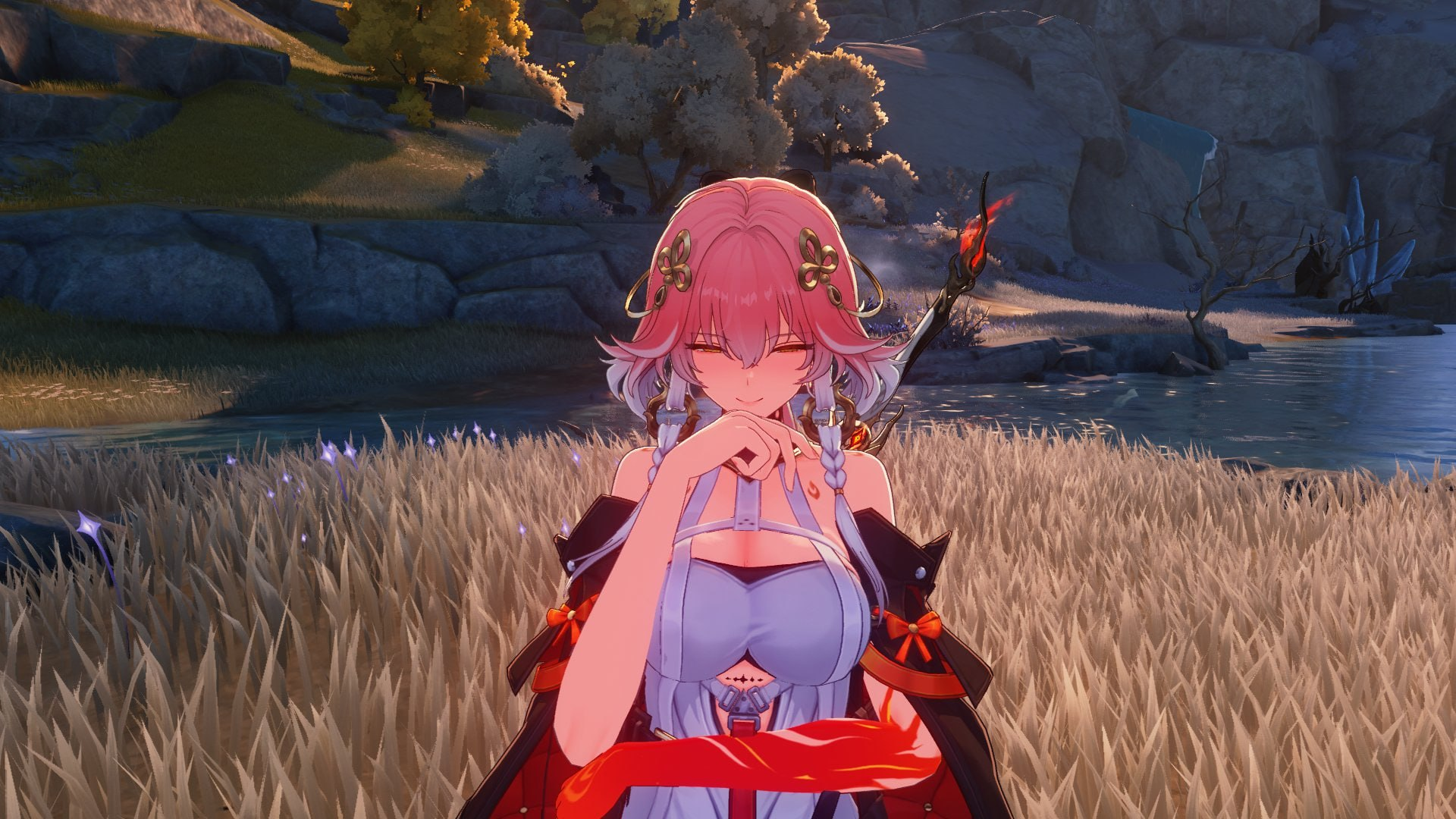 Пилит тяночек в паранже, но с голыми ногами, вызывая бугурт и у паймон, и у психфизов