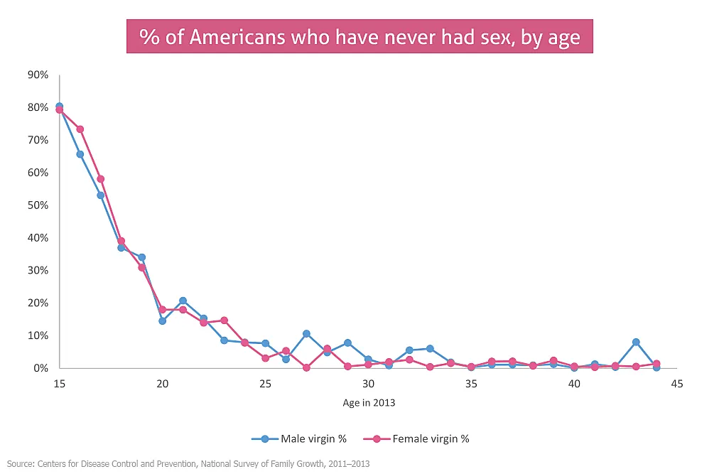 Кажется слышал что статистика манипулятивная, там по факту просто в возрасте 18-22 лвл 90% девственники, в возрасте же 22+ >90% процентов не девственники, от сюда и 40% девственников. Кароче видимо просто более позднее взросление или как назвать.
