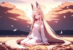 The woman in the image is depicted as a cat girl, which is a fictional creature often found in anime, manga, or fantasy stories. The cat girl is a human-like character with the physical features of a cat, such as cat ears, whiskers, and sometimes even a tail. The specific character or series she belongs to cannot be determined from the image alone, but her appearance and the context of the scene suggest that she is a character from a fictional world or story.