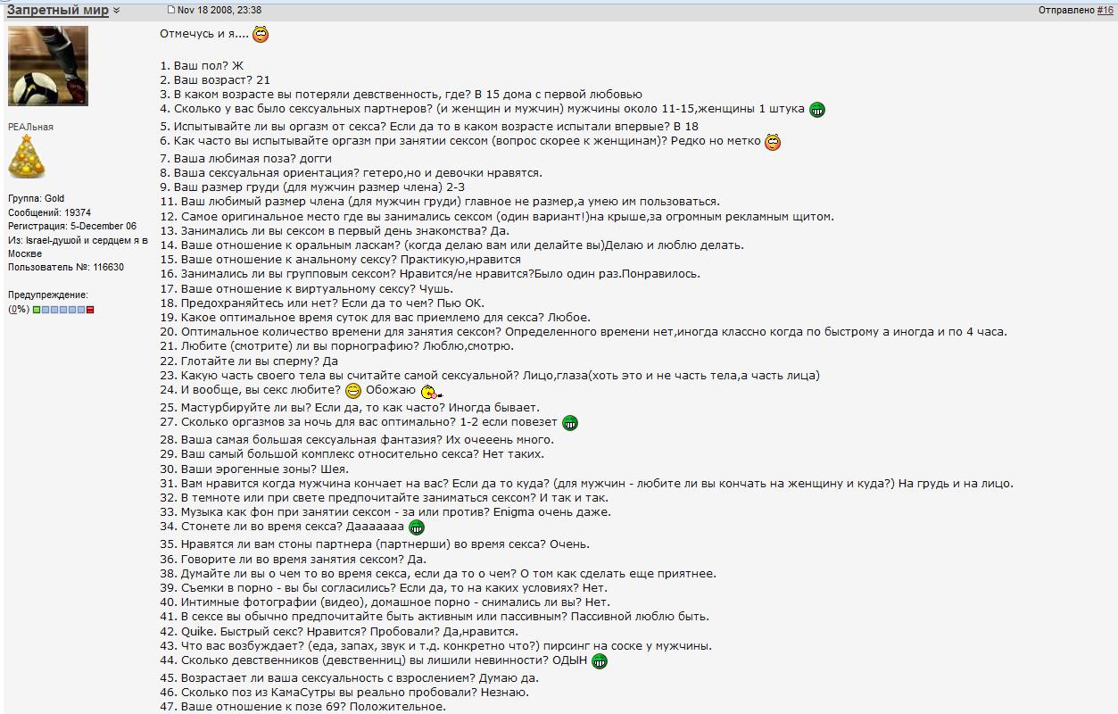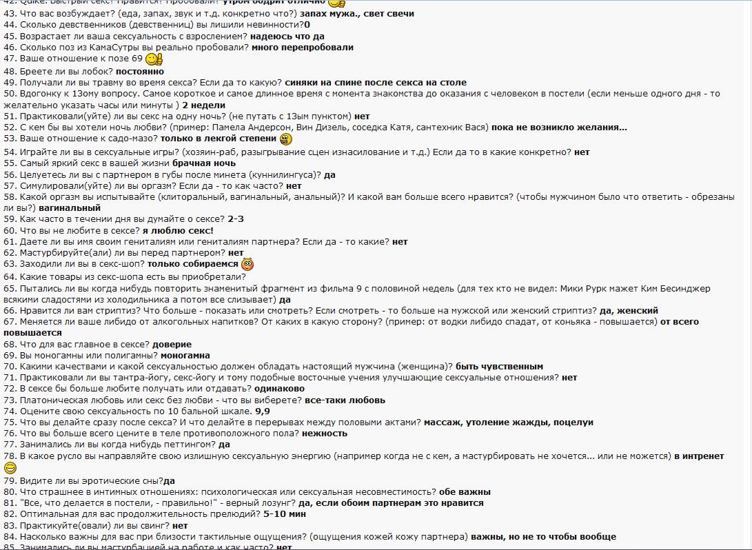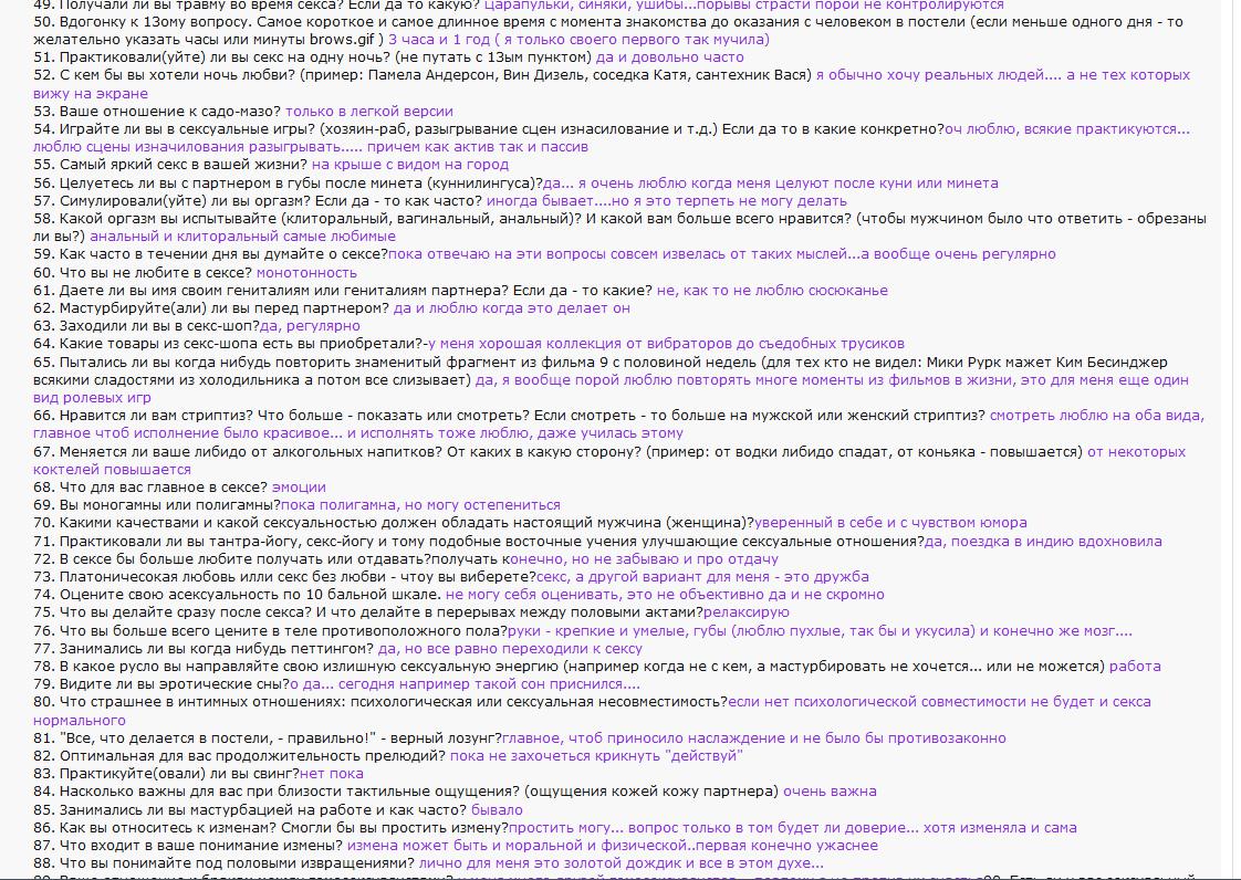 те, кто заполняет эти анкеты скорее всего пиздит. Настоящие прожженые шлюхи никогда не хвастаются.