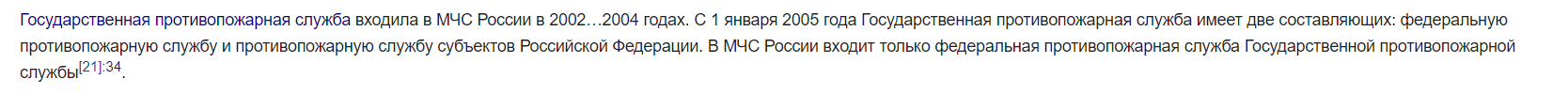>>306478073 >>306478080 Государственная противопожарная служба входила в МЧС России в 2002…2004 годах. C 1 января 2005 года Государственная противопожарная служба имеет две составляющих: федеральную противопожарную службу и противопожарную службу субъектов Российской Федерации. В МЧС России входит только федеральная противопожарная служба Государственной противопожарной службы. Нахуй вы вообще высираетесь в тред если даже гуглом пользоваться не научились?