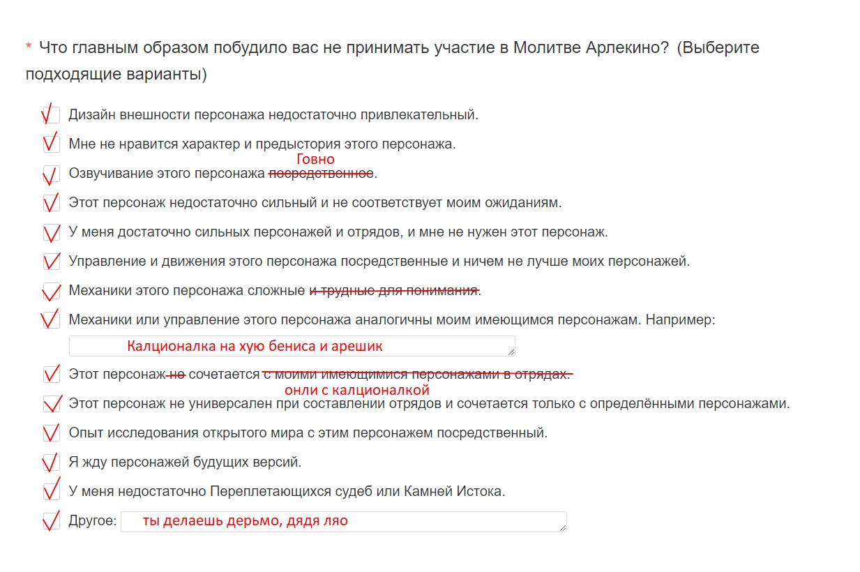 Но Ляо настолько долбоеб, что проводит вот такие опросы среди тех кто не крутил. Вот если бы он спросил меня по поводу Арлекино, я бы ему хуев то в рот в опроснике бы напихал.