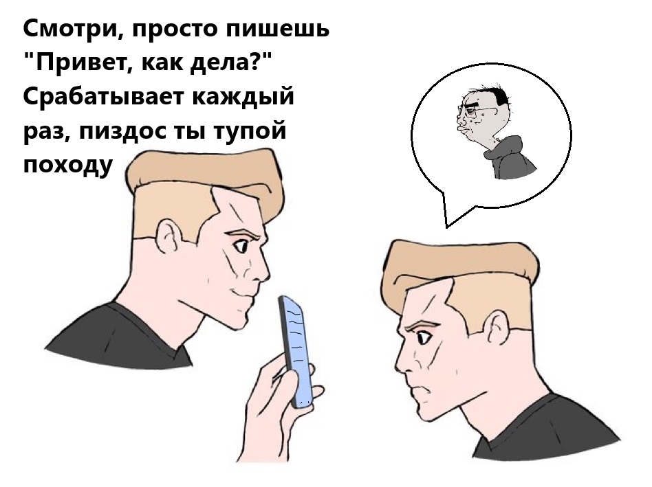 Вот знаете, бывают ситуации, когда какой-нибудь скуф с шуточками-прибауточками подъёбывает какую-то тян, и тян теряется. Потому что она привыкла к омежкам, привыкла к гигачедам, а тут скуф - к ним тоже привыкла, но этот как-то вообще не вписывается в эту схему. То вопросы задаёт, то что-то цроцитирует, то поймает на слове, тян сразу теряется и потом скуф пробрасывает что-то и потом её уже ебёт.