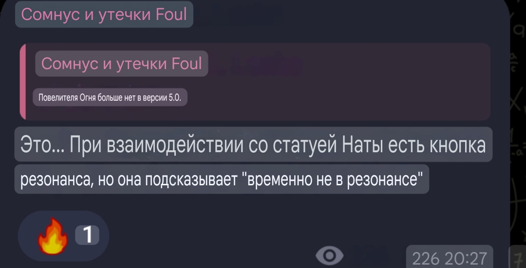 Ну короче понятно все,мавуика это не архонт Настоящий архонт ввиде огней только оставлся,в конце 5.0 или в 5.1 мы его воскрешаем,может даем в жертву мавуику,и получаем наконец возможность юзать пиро гг И конечно старый архонт это мужской персонаж,Давей никогда не меняется Скриньте предикт,по болшей части будет верным