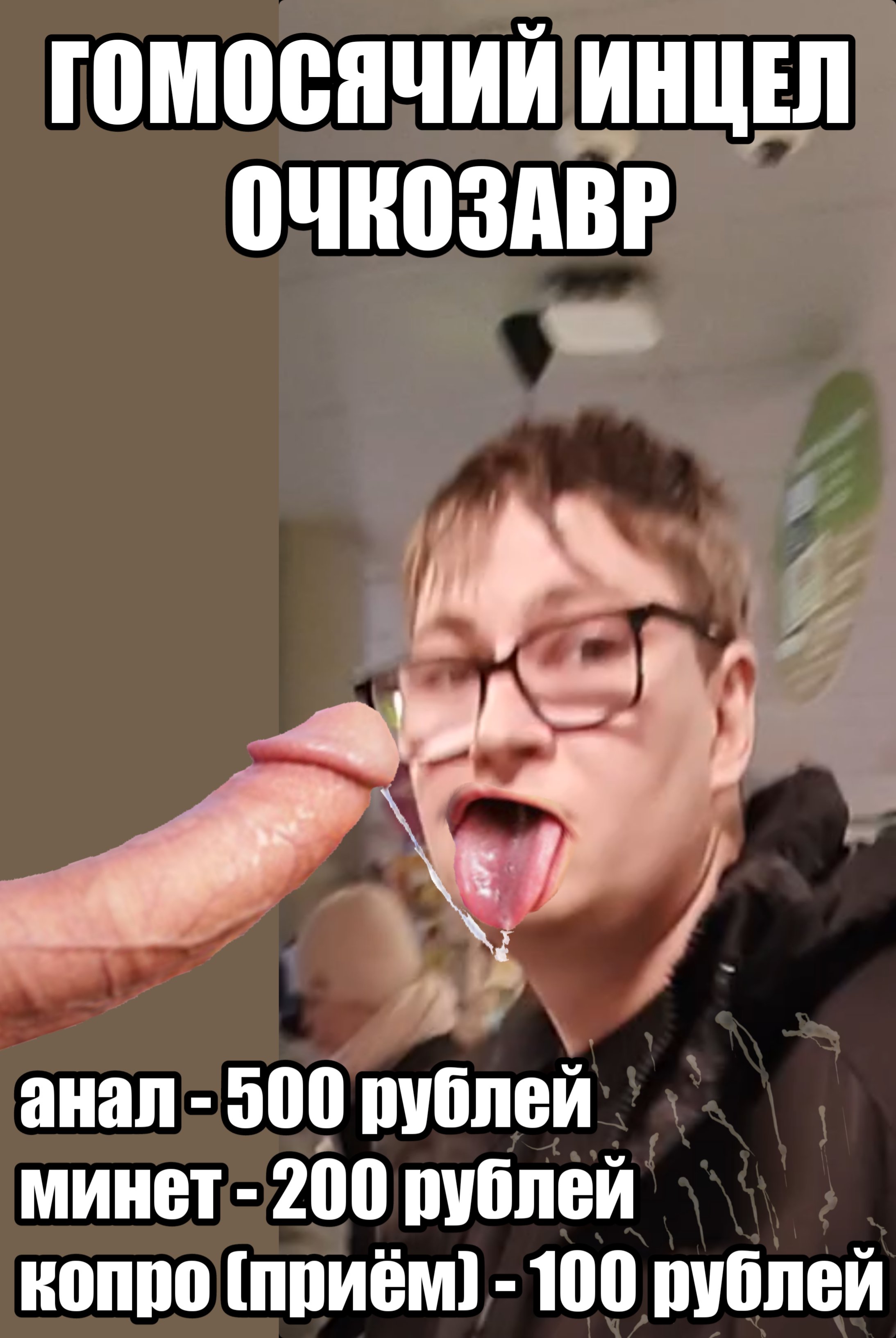 Охранник камерный хуесос на пикриле, тру омежка очкастая, инцел, вот так я хотел пик распечатать и ночью на магаз приклеить, но чет забил потом.