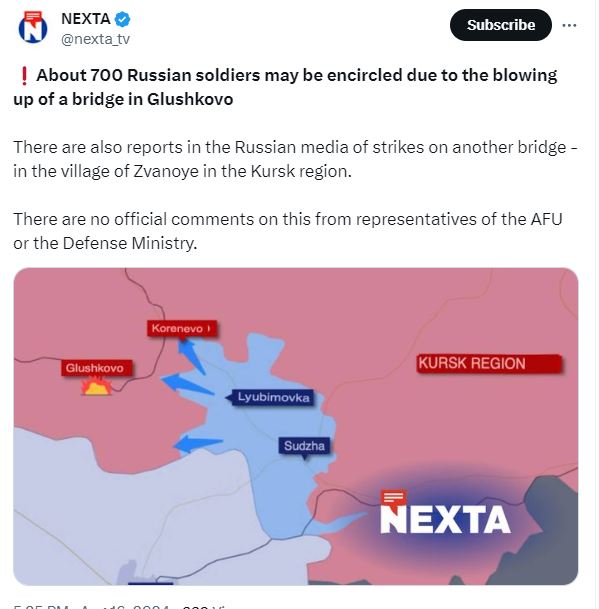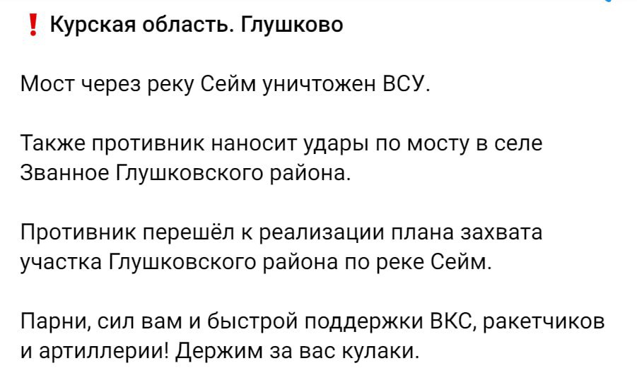 В Глушково Курской области ВСУ уничтожили наш мост.