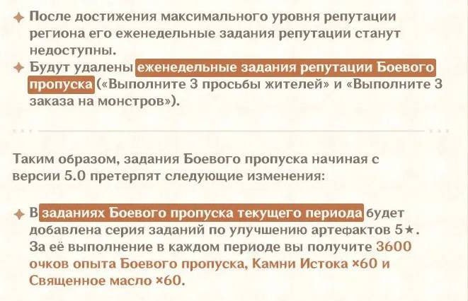 Я не пони, 60 примосов - это каждую неделю или просто за один БП? Если за один БП, то конечно полная хуита, ещё и 100 артов прокачать, офигеть просто, нафиг мне столько артов? Когда уже и без того хватает. Если в неделю, то это жесть сколько артов качать надо, непонятно зачем. А задания обидно, все таки, хорошая была штука, да и 150к моры все таки на дороге не валяются
