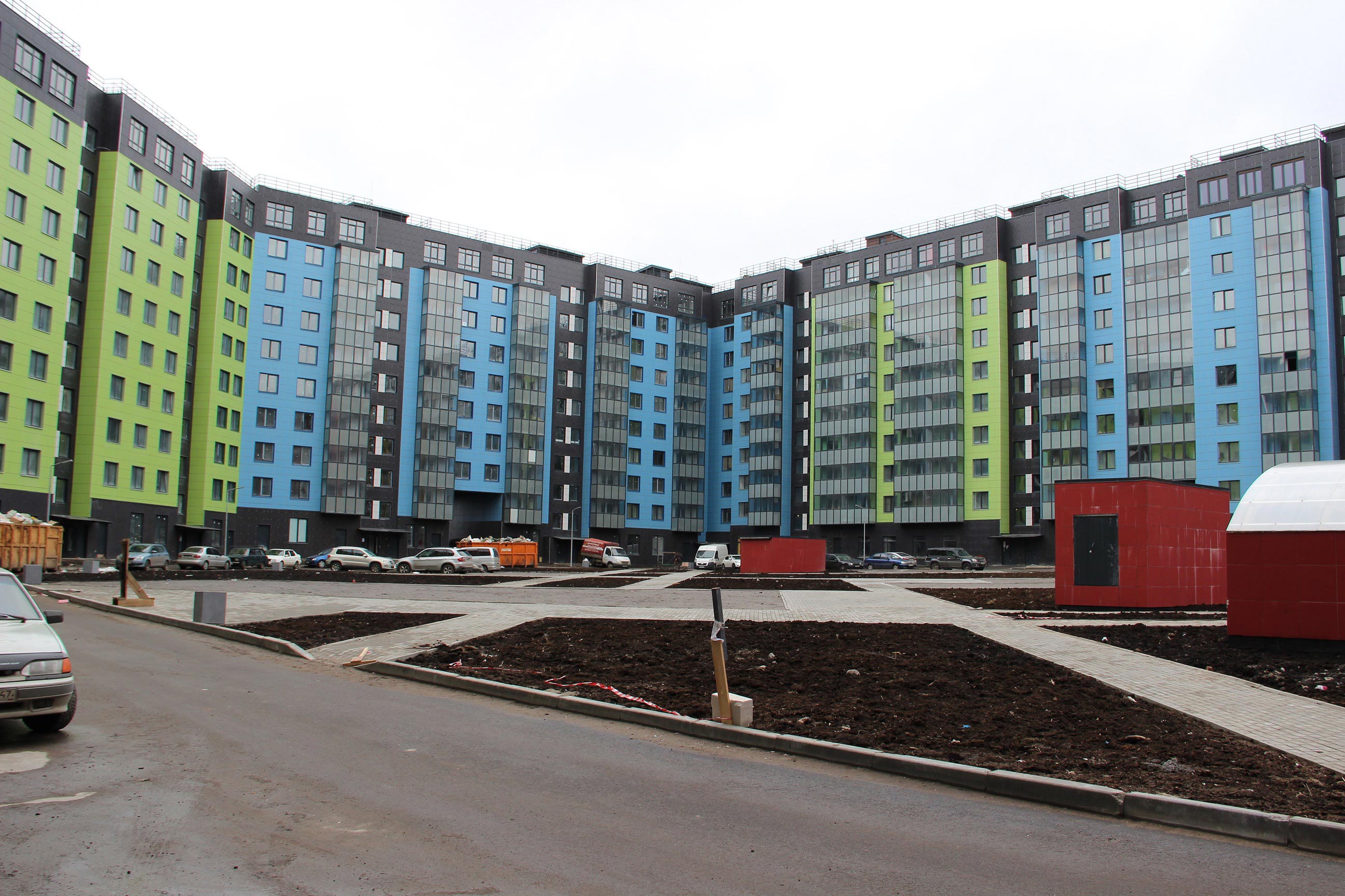 11 этажный дом один большой, построенный под кольцо, прямоугольник, внутри огромный лесо-парк, где то 1км квадратный. Территория закрытая, никто кроме жильцов туда попасть не может.