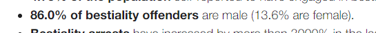 >>5716713 >>5717006 >"Статистика по извращениям" это вообще как? Дай ссылку. Ты понимаешь, что это даже звучит невероятно глупо Невероятно глупо звучит твое неумение в элементарный гугл, хватает наглости ведь ещё огрызаться, чушок типикал. Вот пожалуйста 86% зоофилов чушки, а ты перемогай дальше что а в одном треде писали.. а одна тян сказала.. https://bedbible.com/how-common-is-bestiality-and-zoophillia-statistics/