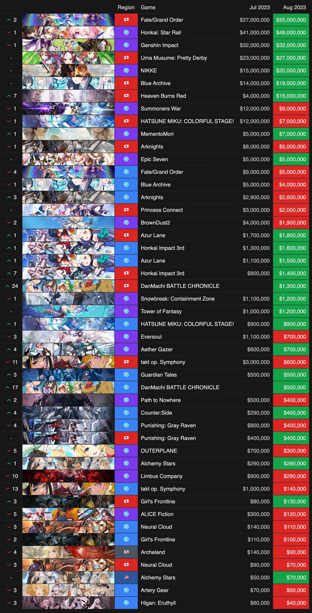 Фиксирую стабильный упадок Ляо конторы и схлопывание бренда. Релиз нового региона, новый АЙПИ... и днище ниже продаж единственного Геншина всего два года назад. Нужно было занимать Геншином, а сейчас соре, Ляо, твоя контора имеет токсичную репутацию и нихуя ты с этим не сделаешь, можешь продолжать плакать.