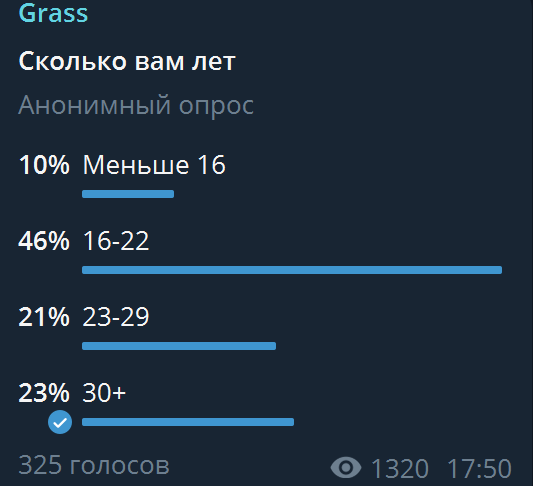 Еще решил свои тухлые GRASS сумки в ТГ немного продвинуть и порекламить. Хочу стать тоже владельцем паблика на 200+ успешных криптогоспод. Анонам всегда рад
