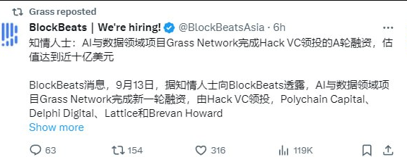 Пишут что Grass закрыл новый раунд серии А с оценкой в 1млрд$, это инвест 80-100М$. Если окажется правдой, цена в 1-2$ вполне реальна и это пиздец как много. Плюс Grass в твиттере репоснул себе новость о инвесте, таким образом подтверждая слух.