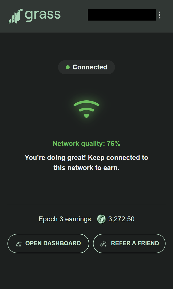 >>987985 (OP) Разобрался как подключить прокси, с помощью ребят из тех самых групп на 200 успешных криптоманов. Чуть позже могу запилить небольшой гайд, как повысить свою потенциальную прибыль. Но сначала надо что бы Grass ожил, и закупиться проксями.