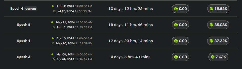 Сейчас показывает дроп только за 0-7 эпоху. Без учёта бонусной. В целом, распределение такое: 🟢Closed Alpha: 1.5% 🟢Epochs 1-7: 7% 🟢Bonus Epoch: 0.5% 🟢To Be Announced: 1%