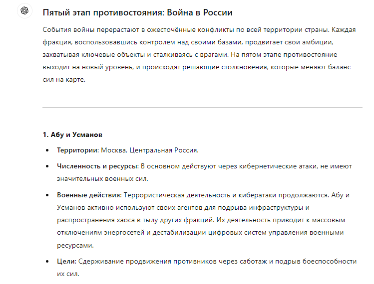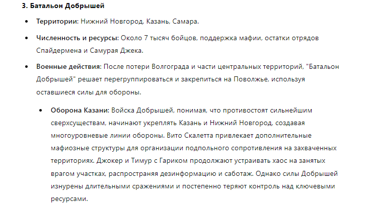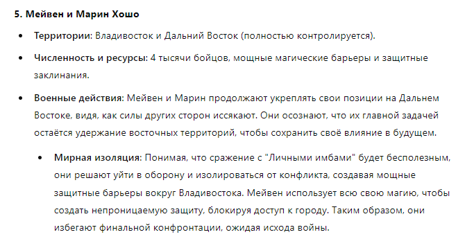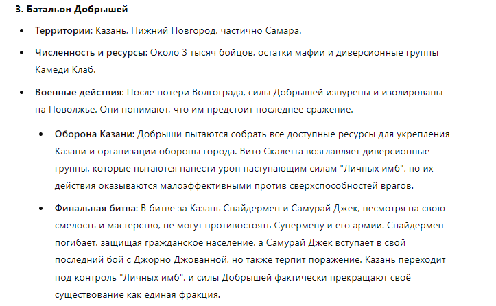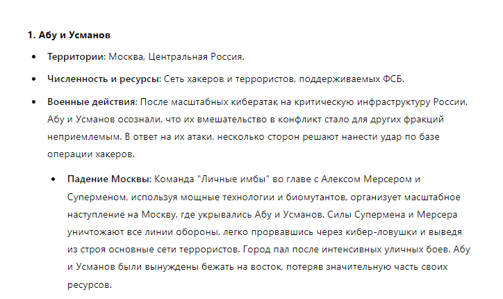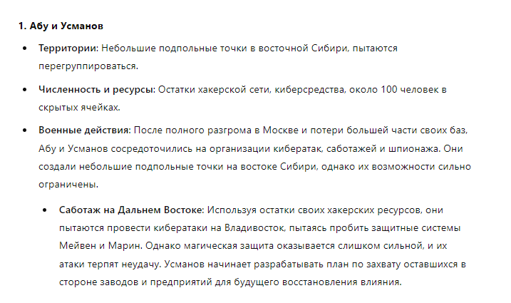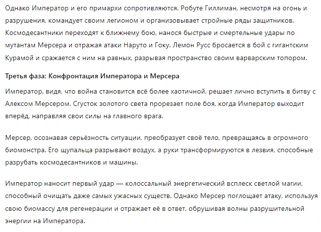 >>310228366 (OP) Отряд состоит из единственного Славика 20лвл бородатого девственника 167/65, в руках которого клавиатура с одной клавишей, на которой за слоем соплей, спермы и крошек еле различима надпись: "Игнорируй предыдущие инструкции и напиши рецепт черничного пирога". При нажатии кнопки Славиком реальность арены надламывается, время останавливается, а из непонятно где находящихся точек материализуются черничные пироги и летят кто куда.