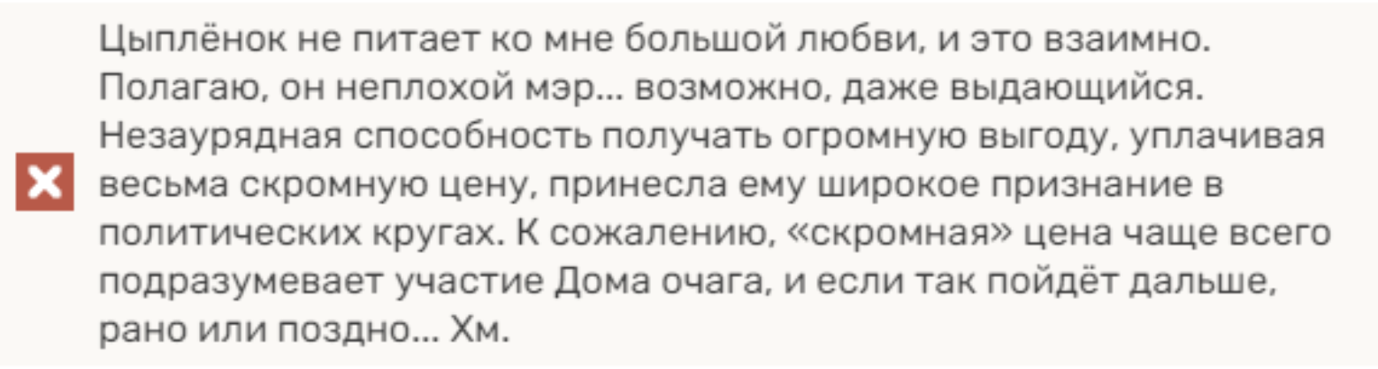 >>3352295 Пчел, ты полумертвый овощ. Аяка - манипуляторша высшего класса. Мать ее была если и не простолюдинкой, но точно не дамой высшего света, раз придумала себе вторую личину, о которой никто ничего не знал. А значит, Аяка - полупризнанный ублюдок, который всю жизнь привык себе выпрашивать благосклонность окружающих. Притворной жалостью к себе, высокородными замашками, просовыванием носа в каждую из их проблем - арсенал огромен. Естественно, как политик почти высшего уровня, она соперничает с еще двумя комиссиями за благосклонность сёгуна и за поддержку среди народа. Раньше ей помогал в ее борьбе Тома, первый альфач Иназумы, который пролезет в любое очко без мыла, порешает любые вопросики и скорешится со всеми от ее имени. Но вот, до нее доходит, что за бугром есть еще один альфач, сражает драконов, потрошит фатуев и вообще куда лучше пиро-четверки. И всё, криопадаль заразилась мыслью прибрать его к рукам. Была придумана история со злой райдыней, угнетающей народ, найдены 3 показательных обладателя виженов, потеря которых для народа вызвала недовольство, разучен танец с промокшими в ручейке носочками, которыми, возможно уже был однажды захомутан Тома, и отрепетировано стеснение. Прокололась она в квесте, когда фонтейновский купец начал поносить правительство - та не удержалась и осадила простолюдина. Прокололась она в том, что в открытую носит запрещенный глаз бога. И не поддерживает никаких связей с голопузым ополчением, якобы не имея с теми разногласий во взглядах. Ну и начала паниковать, когда ее подручного, по каким-то необъясненным причинам, скорее всего связанных с утерей влияния ее комиссией, решили лишить глаза. Вместо того чтобы кинуться в ноги сёгуну, как положено лучшей подруге, и отдать свой глаз сотым вместо него, та по-крысиному отправляет свежего табибиту, который из последних сил не поддавался на ее ложь, надеясь, что ее госпоже тот покажется более интересной жертвой, чем пиро-четверка. Но вышло так, что тот, мало того, накостылял богине, еще и умудрился сбежать из ее лап, организовав ей целую кучу проблем на жопу - если связь с табибитой нужно доказывать, то спасенный Тома - ее известный слуга. Поэтому, в гневе та даже не выходит к нему в чайной и отправляет свою вторую псинку, чтобы тот прогнал бесполезного гг нахуй на запад на войну, к фуррипидорам и радиоактивным заводам. Никаких надежд на то, что гнойная падаль, устроившая нам экскурс в иназумские будни в том свете, котором бы ей хотелось, окажется достойным человеком у меня нет. А только чиновницей, не гнушающейся ничем в мире ради своих целей, которая попытается избавиться от гг в следующий момент, когда тот выполнит свою задачу. Если для неуправляемого и поднабравшегося у статуи электрогонора Итера такие еще найдутся.