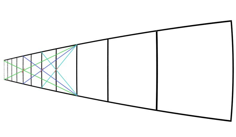 >>101779025 А мне вот всегда было интересно есть ли способ поделить прямоугольник в перспективе на три части подобным методом? начерталку проебал. но душевно.