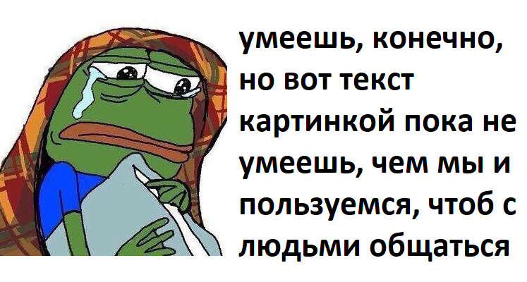 >>311429626 (OP) Господи боже. Отправлял текст картинкой ещё до того как это стало мейнстримом, как говорится. Ещё вставляя всяких анимех, как моё выражение рожи, и всякие визуальные колдунства с текстом.