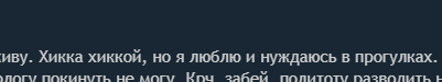 >>5259376 Потому что в хохланде живу. Хикка хиккой, но я люблю и нуждаюсь в прогулках. А сейчас уже как полтора года самостоятельно берлогу покинуть не могу. Крч, забей, политоту разводить ни к чему.