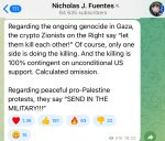 И на дефолтный тейк альтрайтов, что если бы Израиль прям щас сложил оружие, то перестал был существовать, в отличии от Палестины, этот хуй на полном серьезе задвигает, что его в принципе не должно было быть, кек