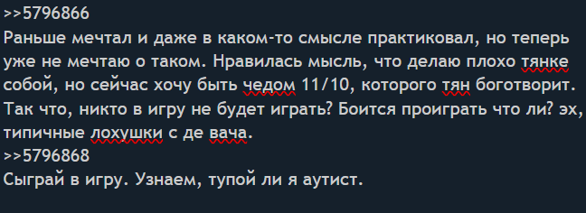 Обратите внимаеие сисы - вот тут у нас экспонат классичего оторванного от реальности двачера. Именно таких вы кормите юшками и пытаетесь что-то доказывать, хотя их манямирок ничем не пробьешь. Задумайтесь какого хуя вы их кормите вместо игнора и репорта, общайтесь с сисами лучше.
