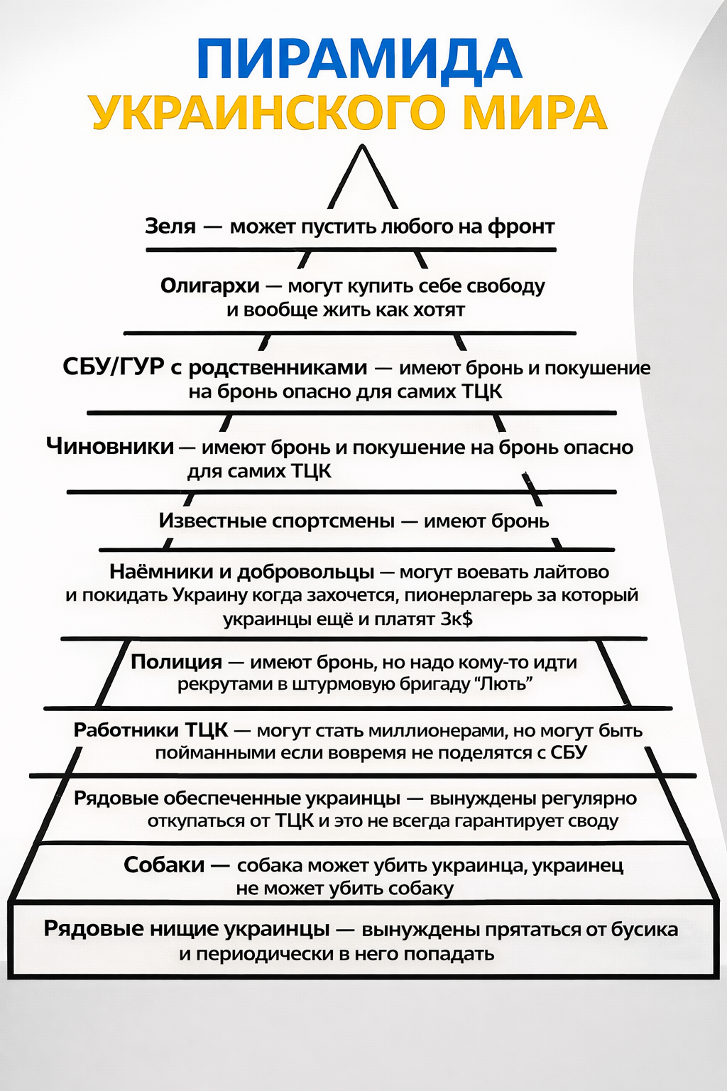 - А мне тут говорили 700к погибших только. - Ахаха тупие москали - Слабо ебут слабо - Мыкола, дашь мне генератор, мне надо свет на полчаса, жинкку свои среди свиней отличить. - Нет , не дам, я тебя уже в ТЦК сдал. - Вот же сука, друг блять, хорошо что я тбя тоже сдал.