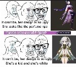Почему в мусоровозе и зетке все персонажи бегают со своим оружием, даже если им поставить 1* кал, а в геншине мало того что ради визуала надо крутить сигны, так и система даже с одним очком по-прежнему уебищная, про те времена когда два очка было даже говорить не хочется. Ну и гемов заметно меньше дают