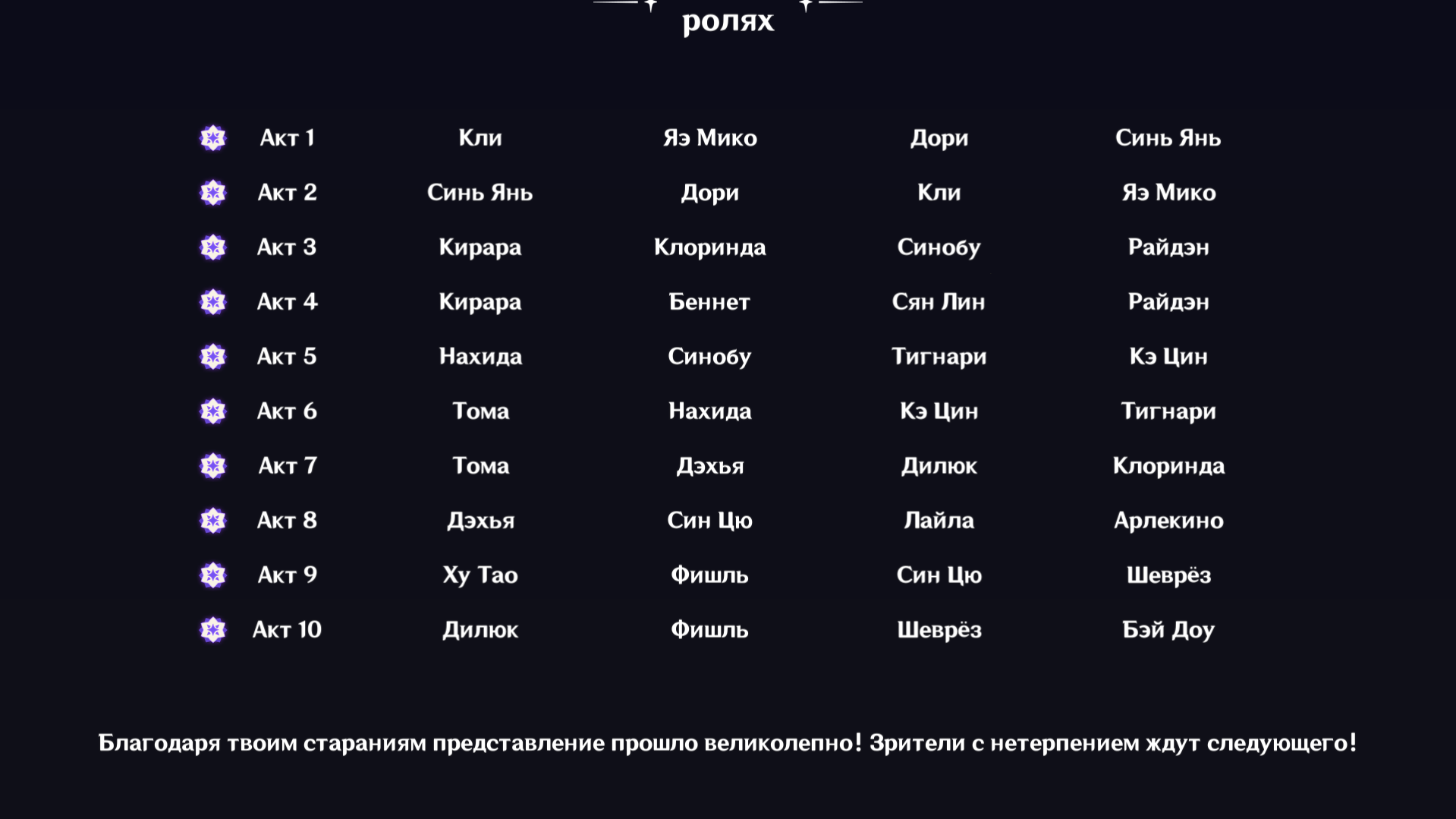 ✦ Показать персонажей https://enka.shinshin.moe/ — ✦ — Планировщик https://act.hoyolab.com/ys/event/calculator-sea/index.html