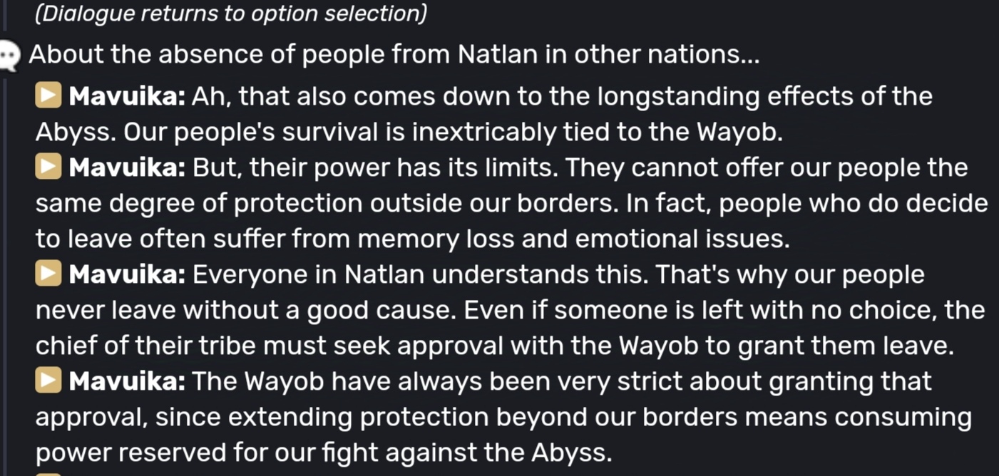 >>3647914 Было-было, я тоже помню, в каком то квесте Пакаль, кажется, про это распинался Буквально вайоб чтобы держать контакт с натлановичком в чужой стране приходится много "энергии" тратить чтобы за ним следить, чтобы он не получал спутанное сознание и пробелы в памяти из за привязки к вайоб. Короче, роуминг дорогой, за него надо через вождя племени добазариваться мимо