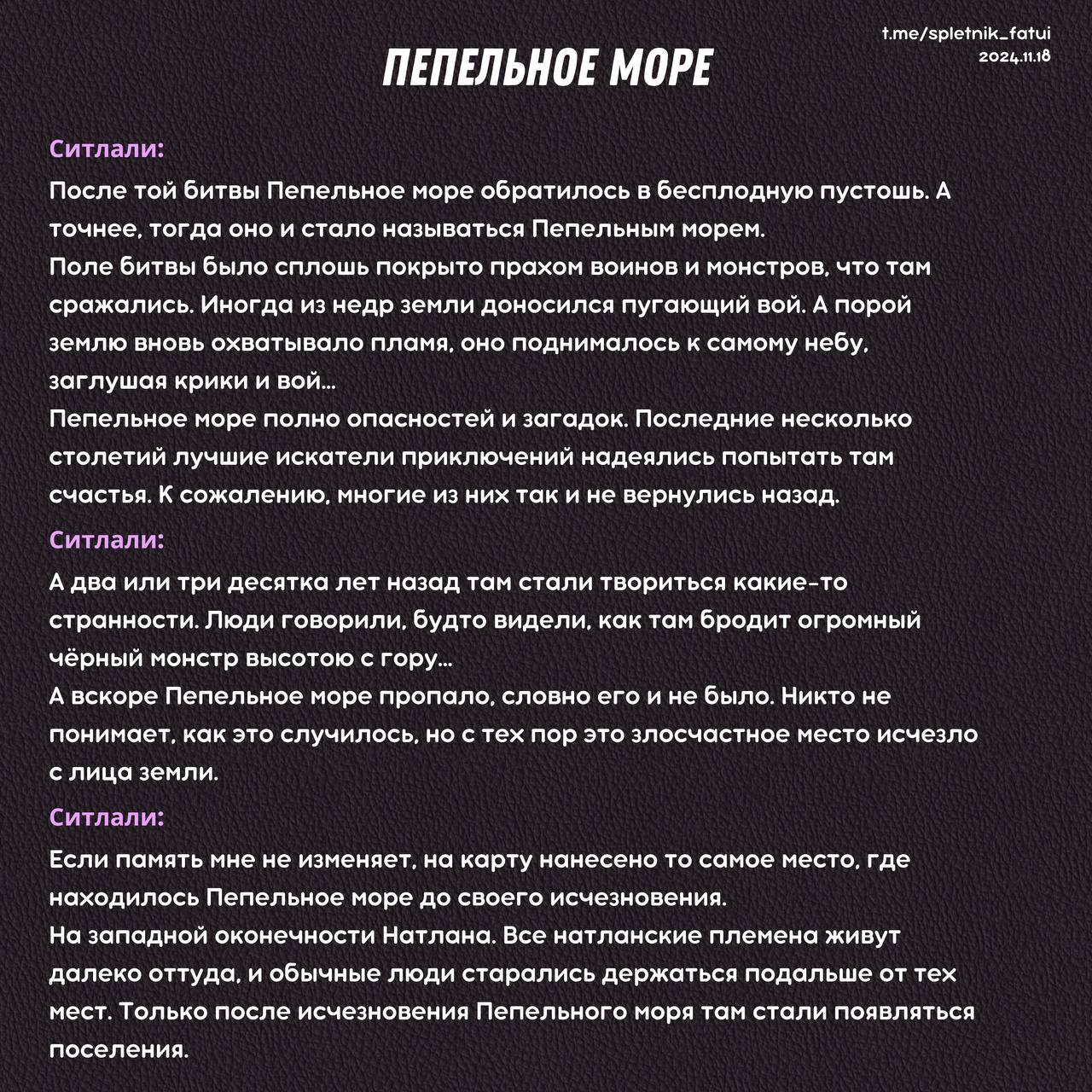 Нашел довольно интересное совпадение, когда мы в Натлане общаемся с духами умерших, у них обычно те же самые имена, которые мы уже видели в Натлане у живых неписей. Я первые пару раз на совпадение списал, но в 5.2 спойлерах это уже по другому не опишешь. Че-то тут нечисто.